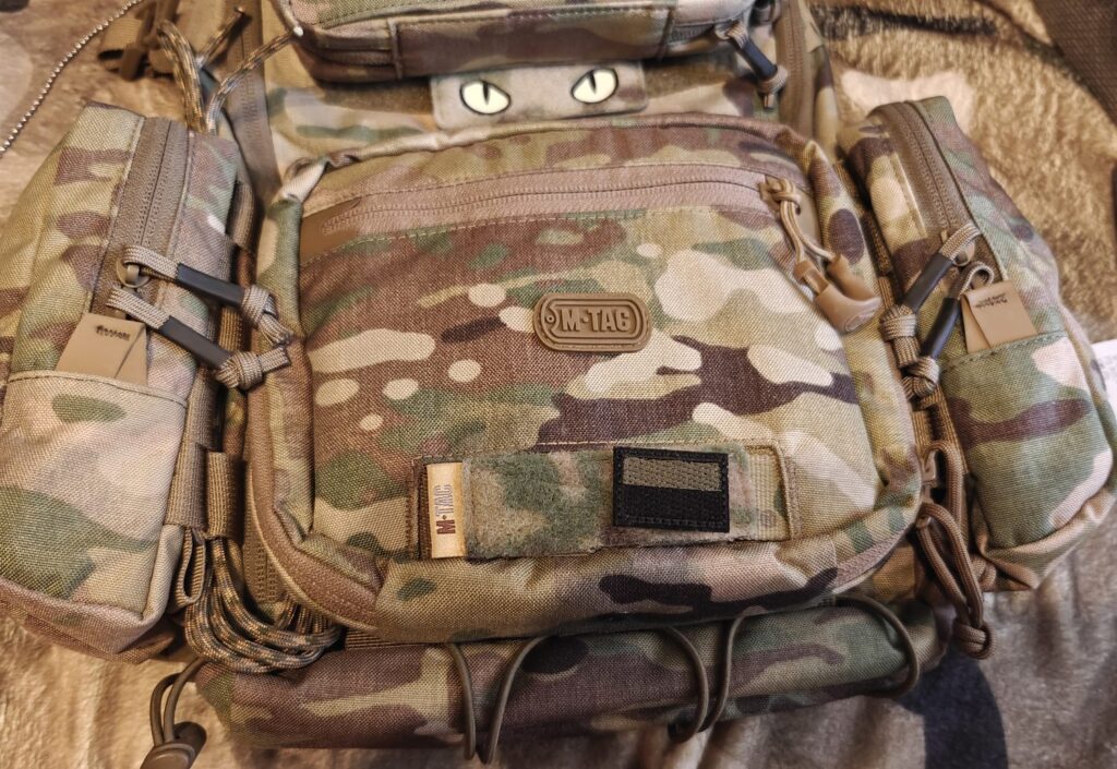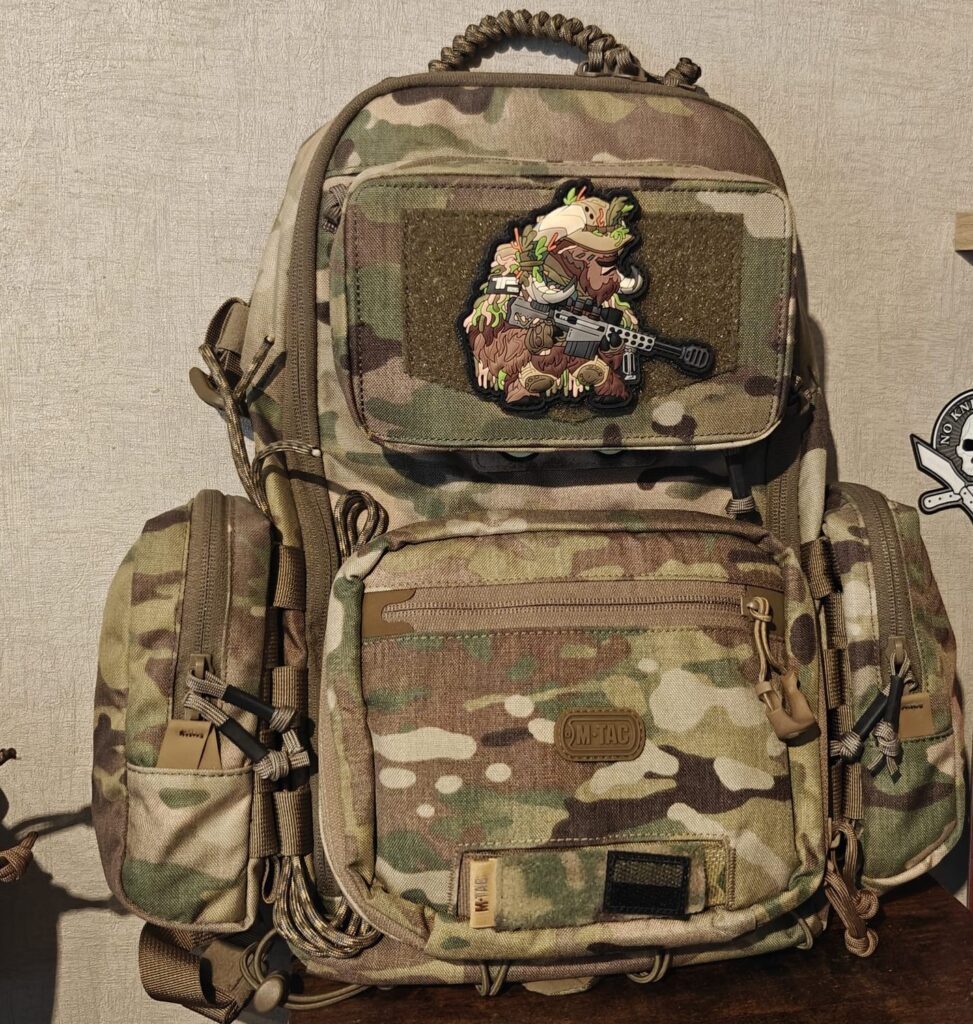 Tutaj mały panel na naszywki przymocowany do plecaka.